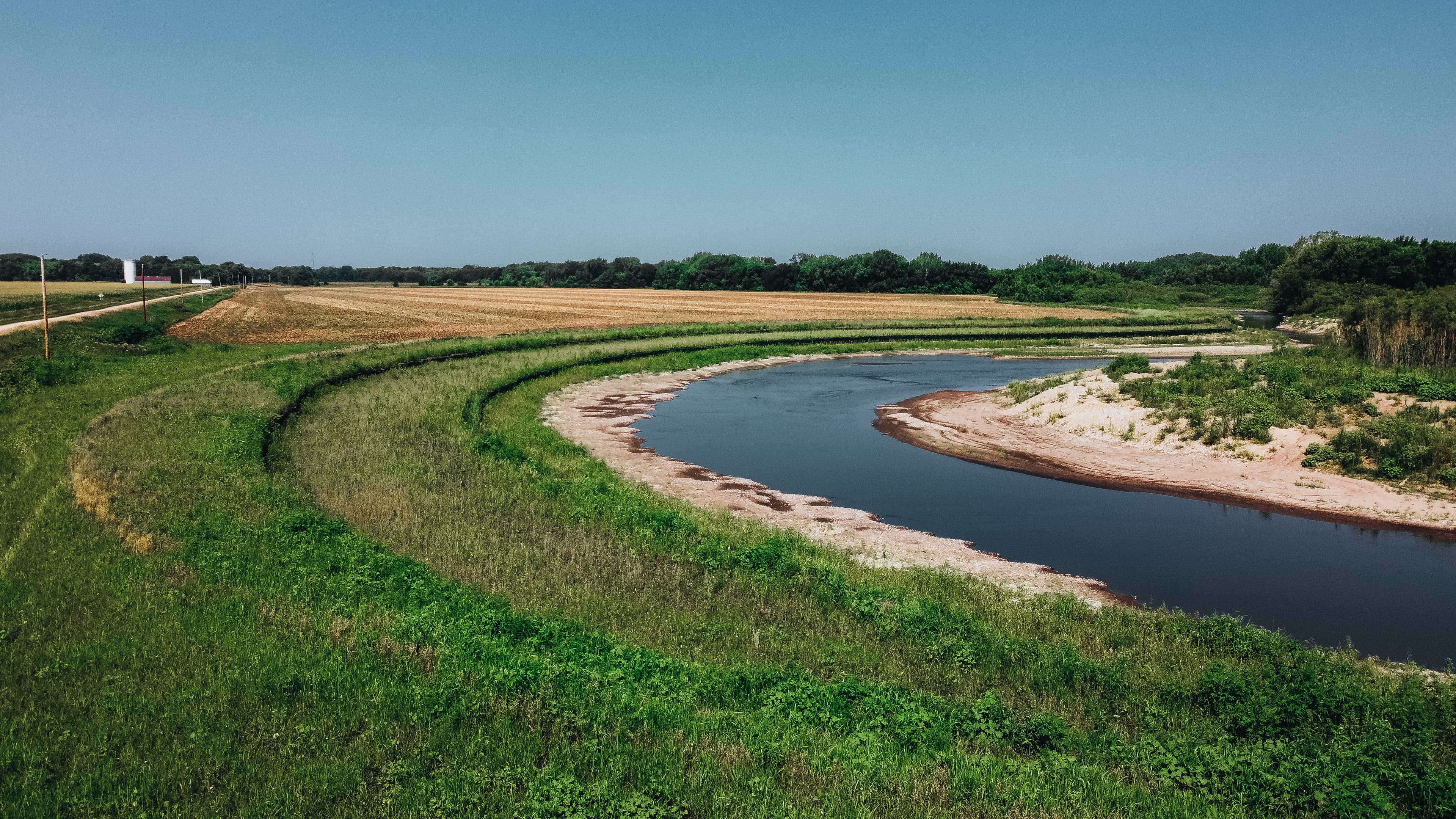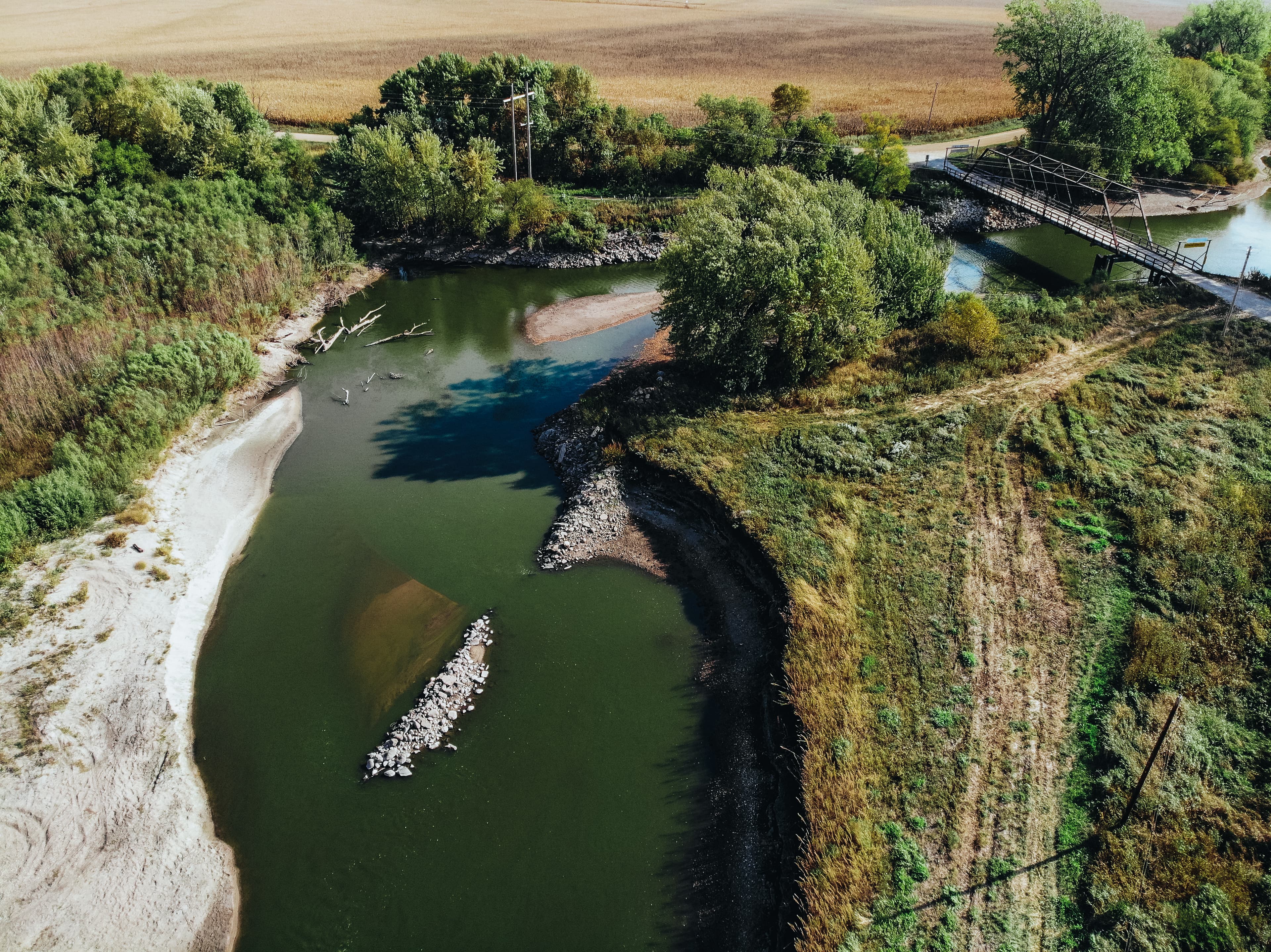 The west fork of the Des Moines River in Palo Alto County, had experienced years of erosion and flooding. From 2006 to 2019, the riverbank had receded up to 215 feet in the middle of the bend. Approximately three acres of soil had been lost during that time, and the receding shoreline was approaching an existing roadway. The historic Kirby-Flynn Bridge was also in jeopardy of approaching waters. This bridge is the only remaining pin-connected Pratt high-truss bridge in the United States, and dates back to 1881.