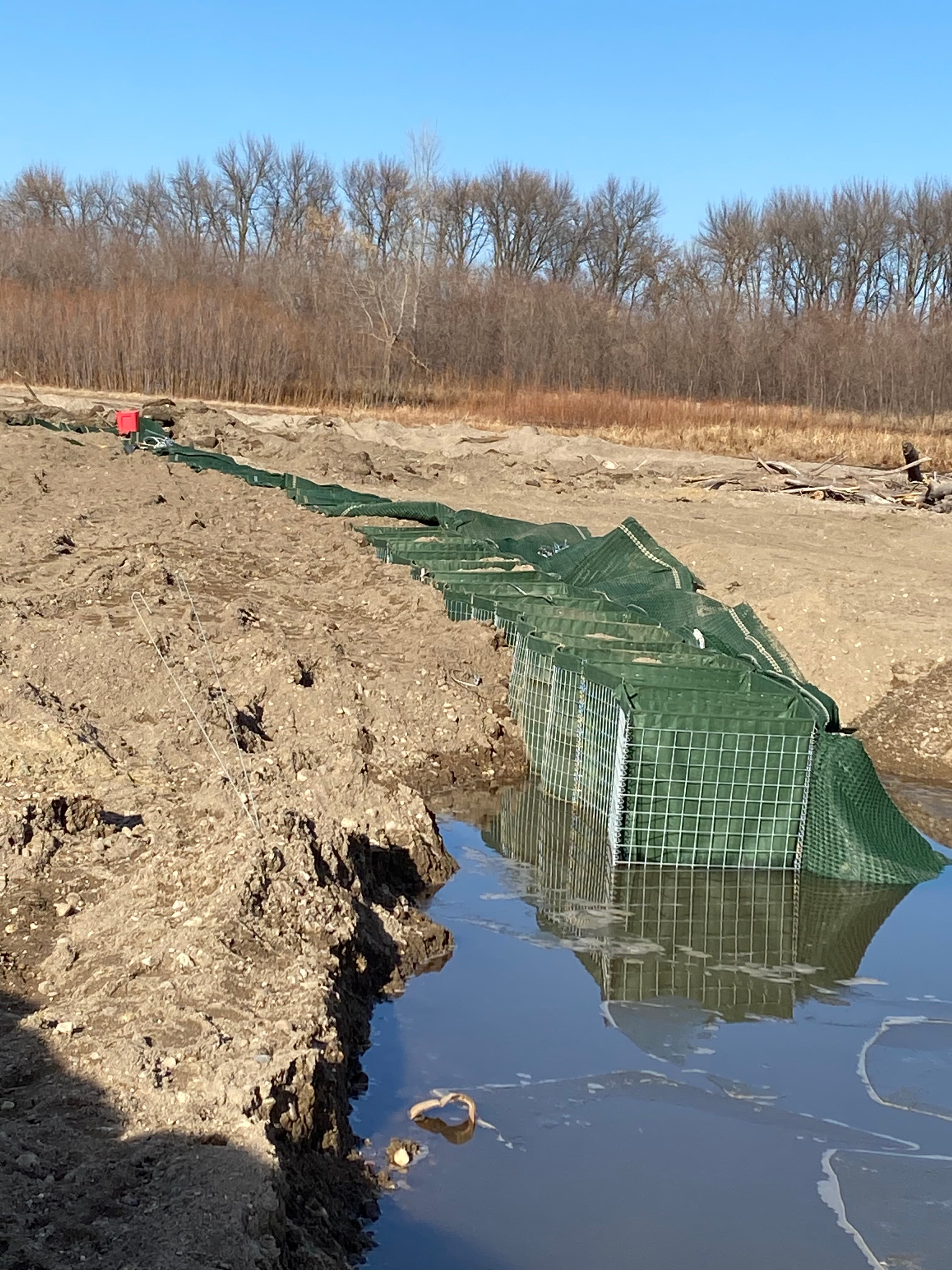 The Sioux City Natural Resource Conservation Service (NRCS) wanted to stabilize approximately 264 m (865 ft) of the bank, and reinstate channel alignment to what it was in 2006. Initially the project engineer considered using rock riprap, but wanted to find a more cost effective solution.