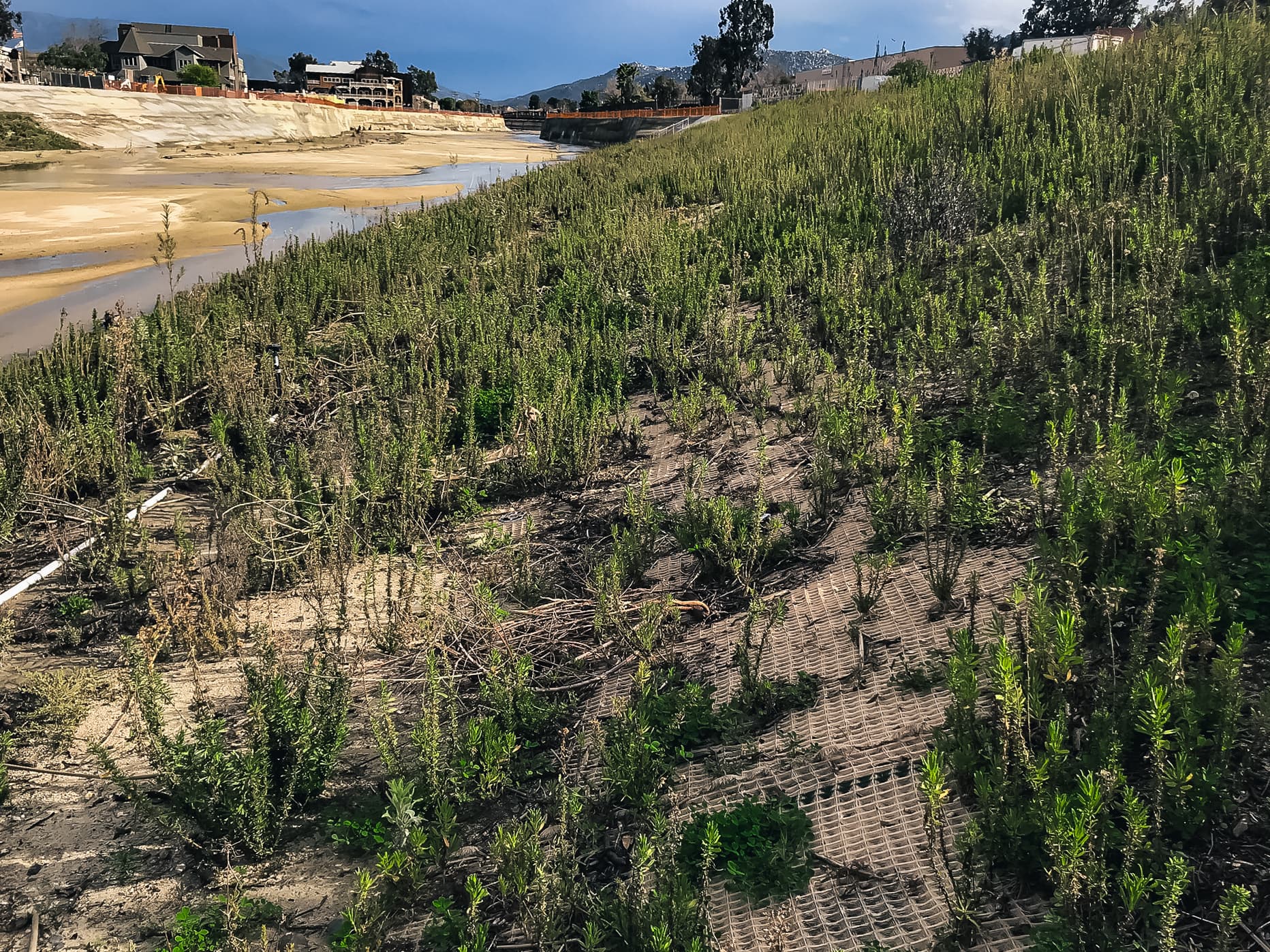 The system consists of High Performance Turf Reinforcement Mat (HPTRM) and earth anchors that provide resilient flood control for up to 75 years. Maintaining water quality was a main concern because Murrieta Creek is recognized as one of the last high quality, minimally disturbed riverine environments in Southern California.
